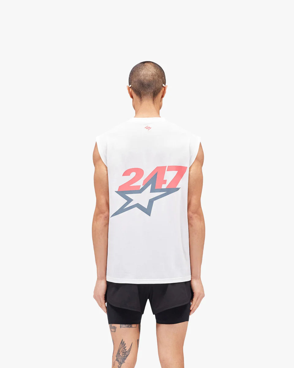 Introducing the Team 247 Star Oversized Tank in Flat White. Crafted from Dri-Release fabric with anti-bacterial and wicking finishes, this oversized silhouette delivers complete freedom of movement throughout any session. A bold star graphic carries the energy of SS26, referencing the optimism of 1980s track and field. Finished with Team 247 branding to the chest and back.