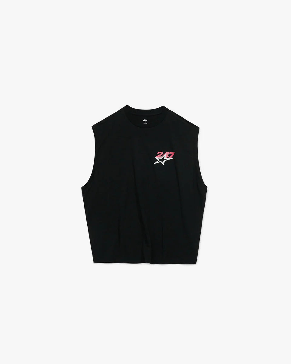 Introducing the Team 247 Star Oversized Tank in Jet Black. Crafted from Dri-Release fabric with anti-bacterial and wicking finishes, this oversized silhouette delivers complete freedom of movement throughout any session. A bold star graphic carries the energy of SS26, referencing the optimism of 1980s track and field. Finished with Team 247 branding to the chest and back.
