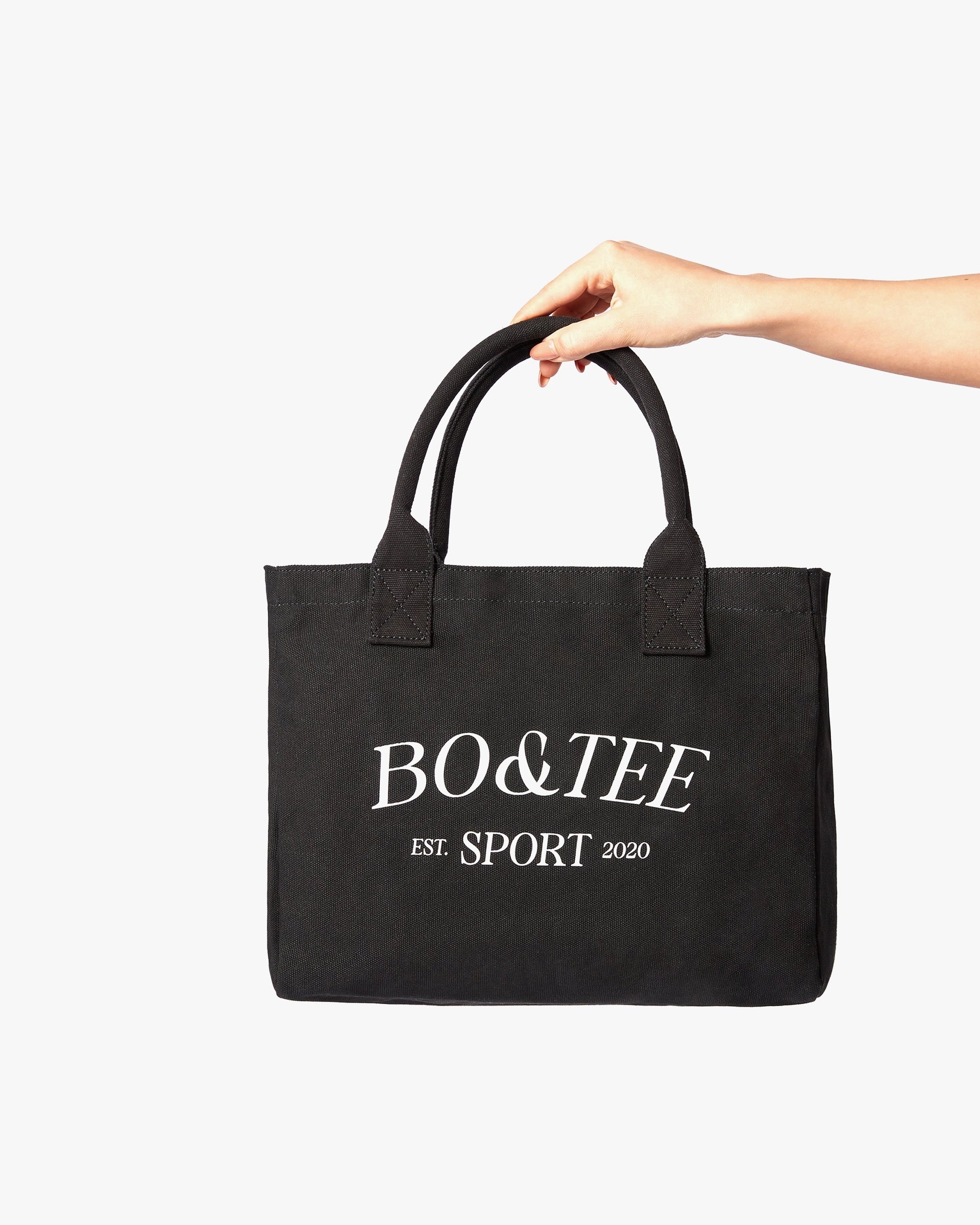 The Sport small tote bag is designed in our premium cotton canvas fabric and features signature Bo+Tee Sport branding printed on the front. With durable dual handles that are designed to last, the Sport small tote bag is an essential accessory perfect for taking your gym wear essentials on the go.