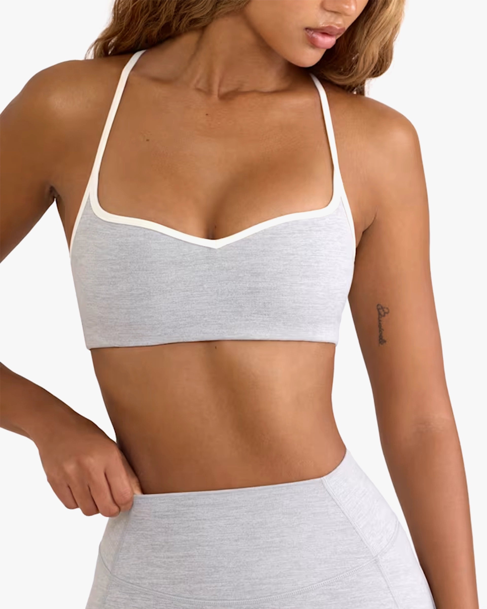 Active staples but make it cute. Crafted from our signature lightweight, breathable and moisture-wicking Soft Active fabric, this light-support sports bra is designed with a contrasting sweetheart neckline and teardrop-shaped cut-out at the back secured with heart-shaped hardware. It features adjustable straps for customisable support and all-day comfort.