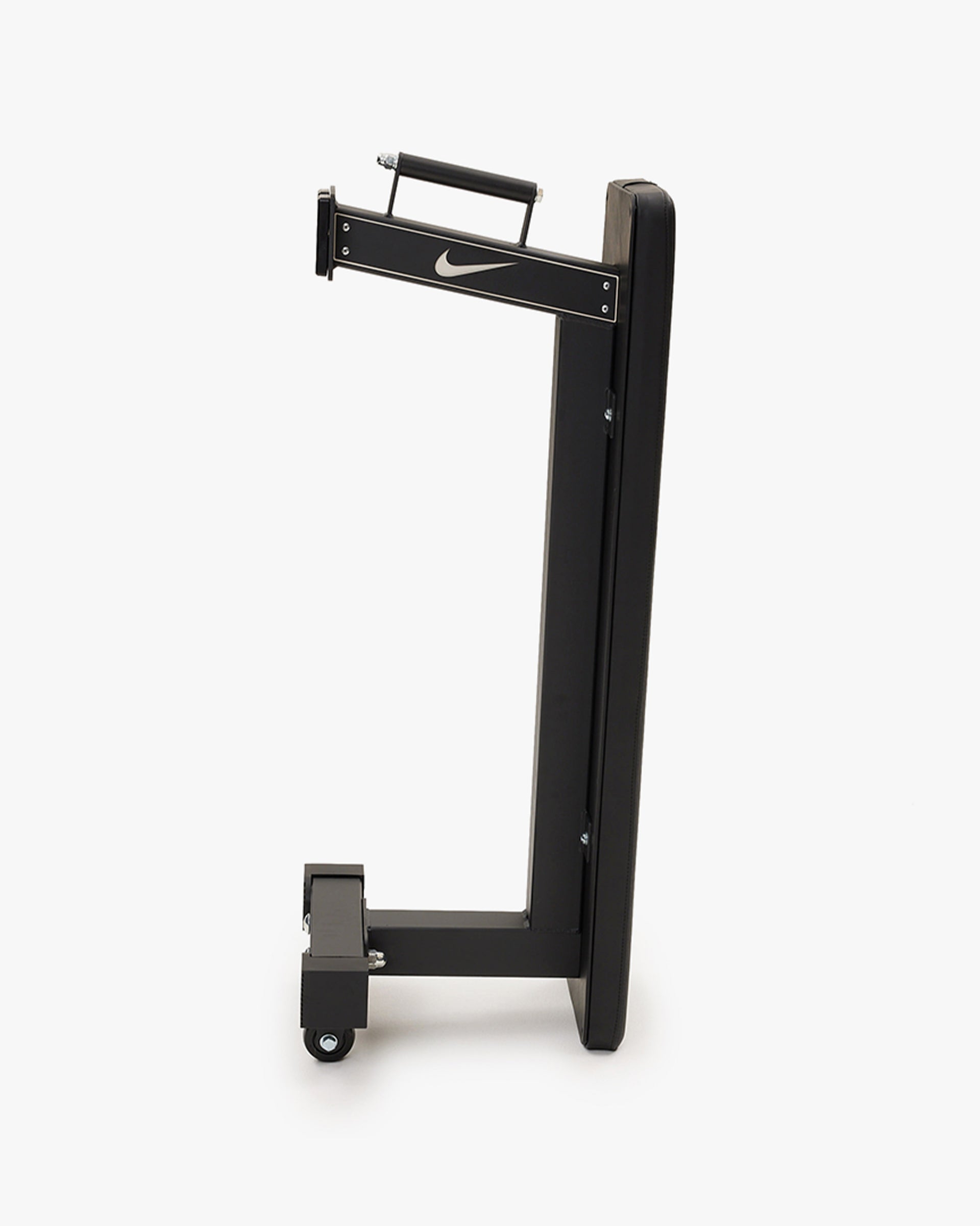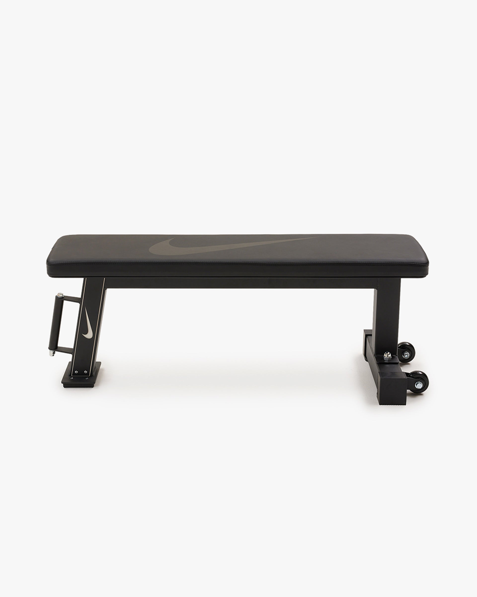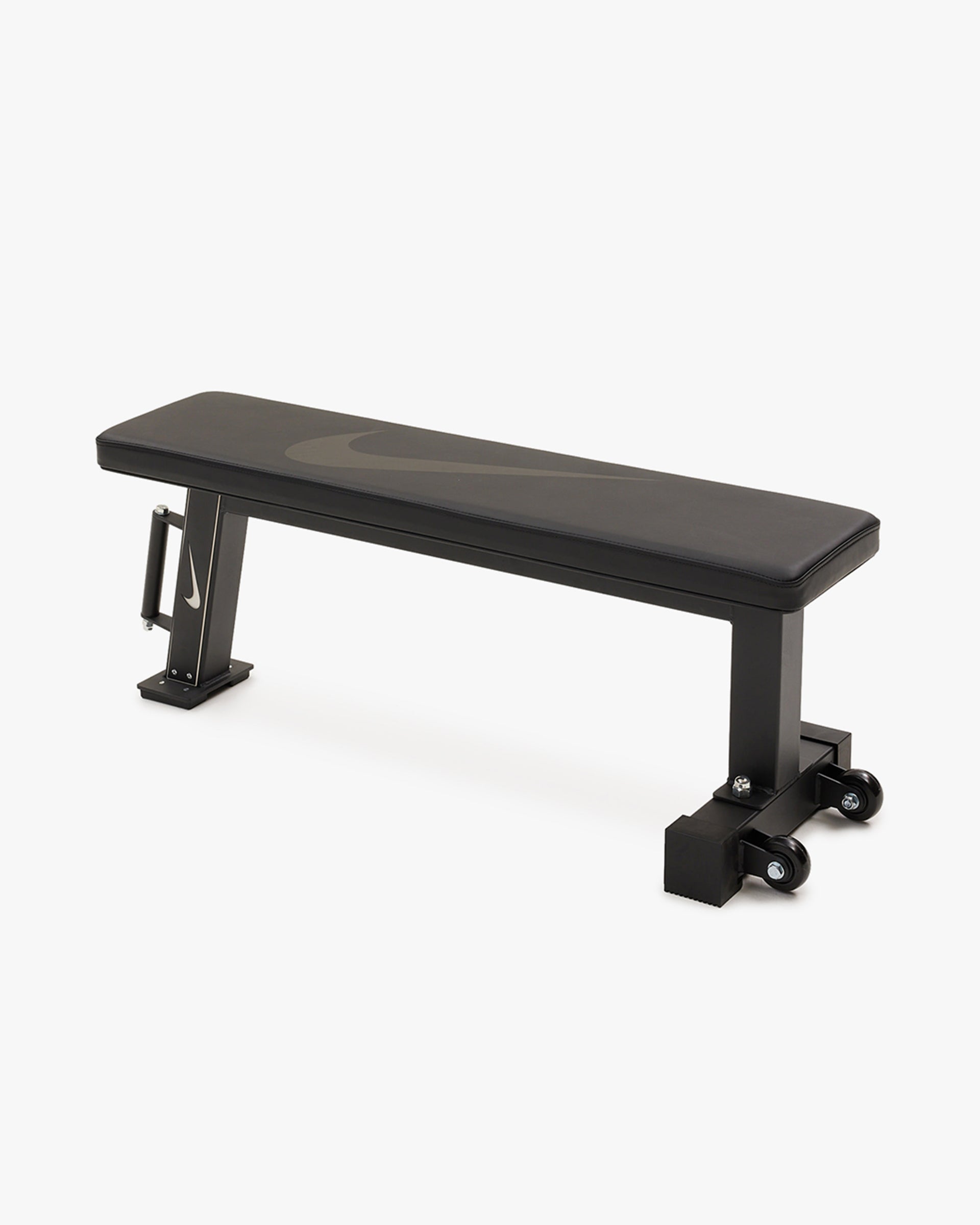 Nike Rolling Weight Bench – your ultimate workout partner that's as versatile as it is portable! Crafted from top-notch materials such as powder-coated steel, durable synthetic leather, and firm foam padding, it delivers unmatched comfort and rock-solid support. Plus, flaunt your style with the prominent swoosh logo. Equipped with premium TPU wheels and a sturdy vertical handle, it's mobility redefined. And when it's time to save space, this bench stores upright effortlessly.
