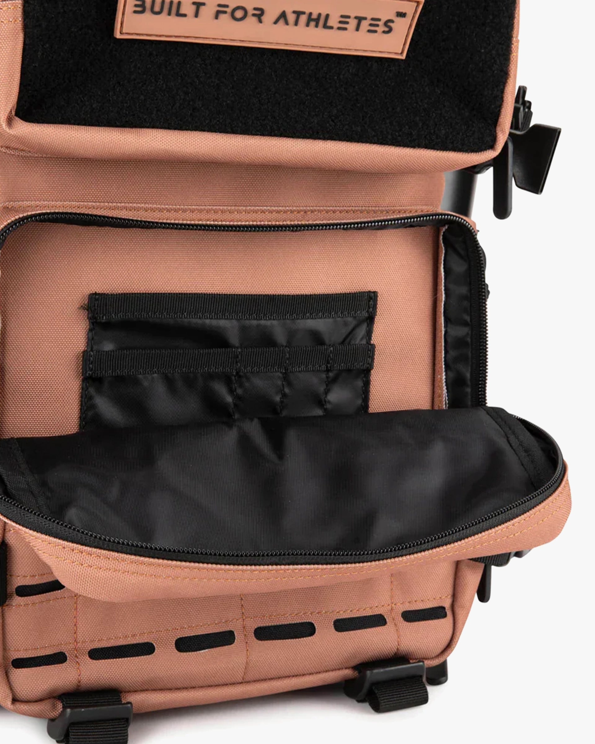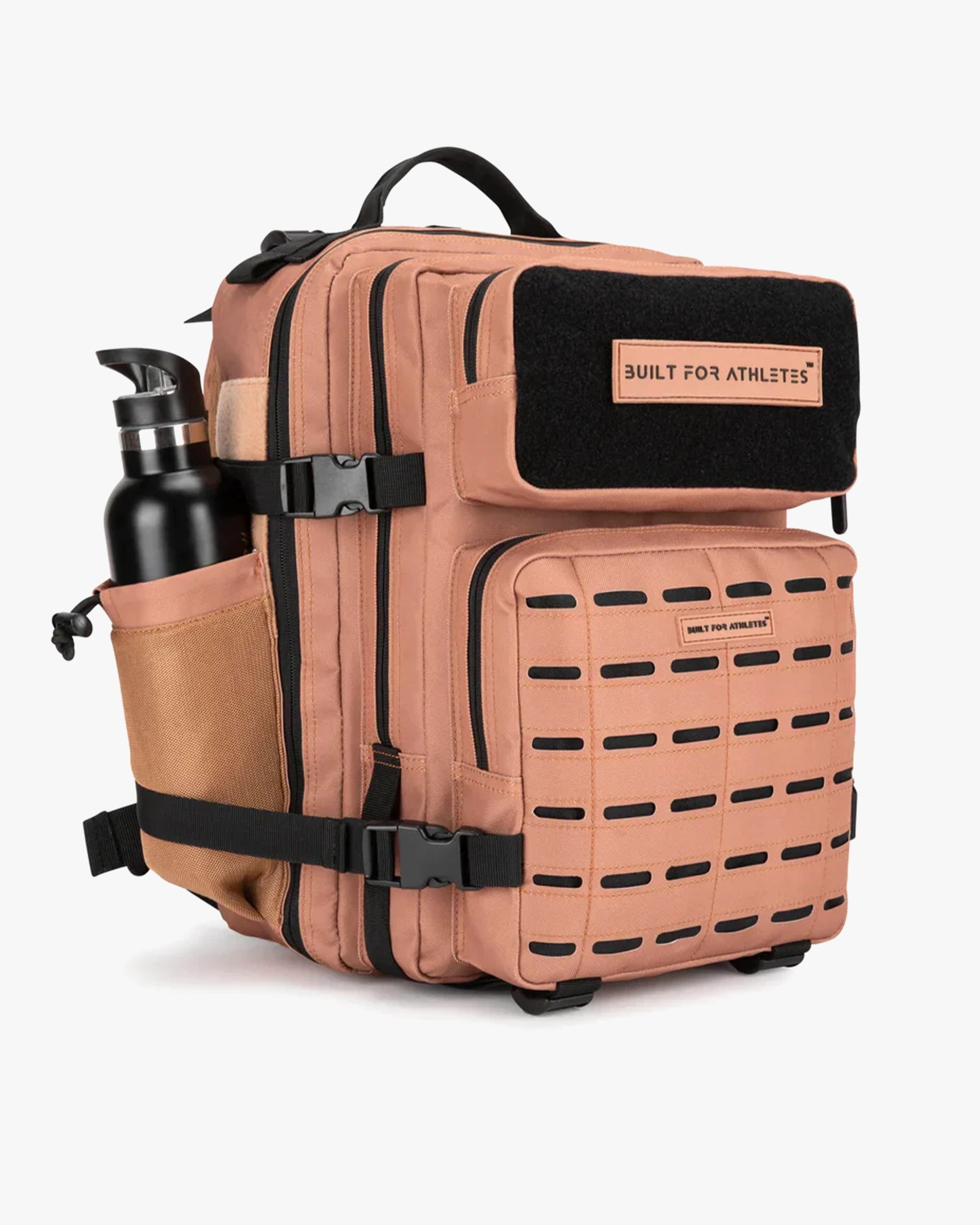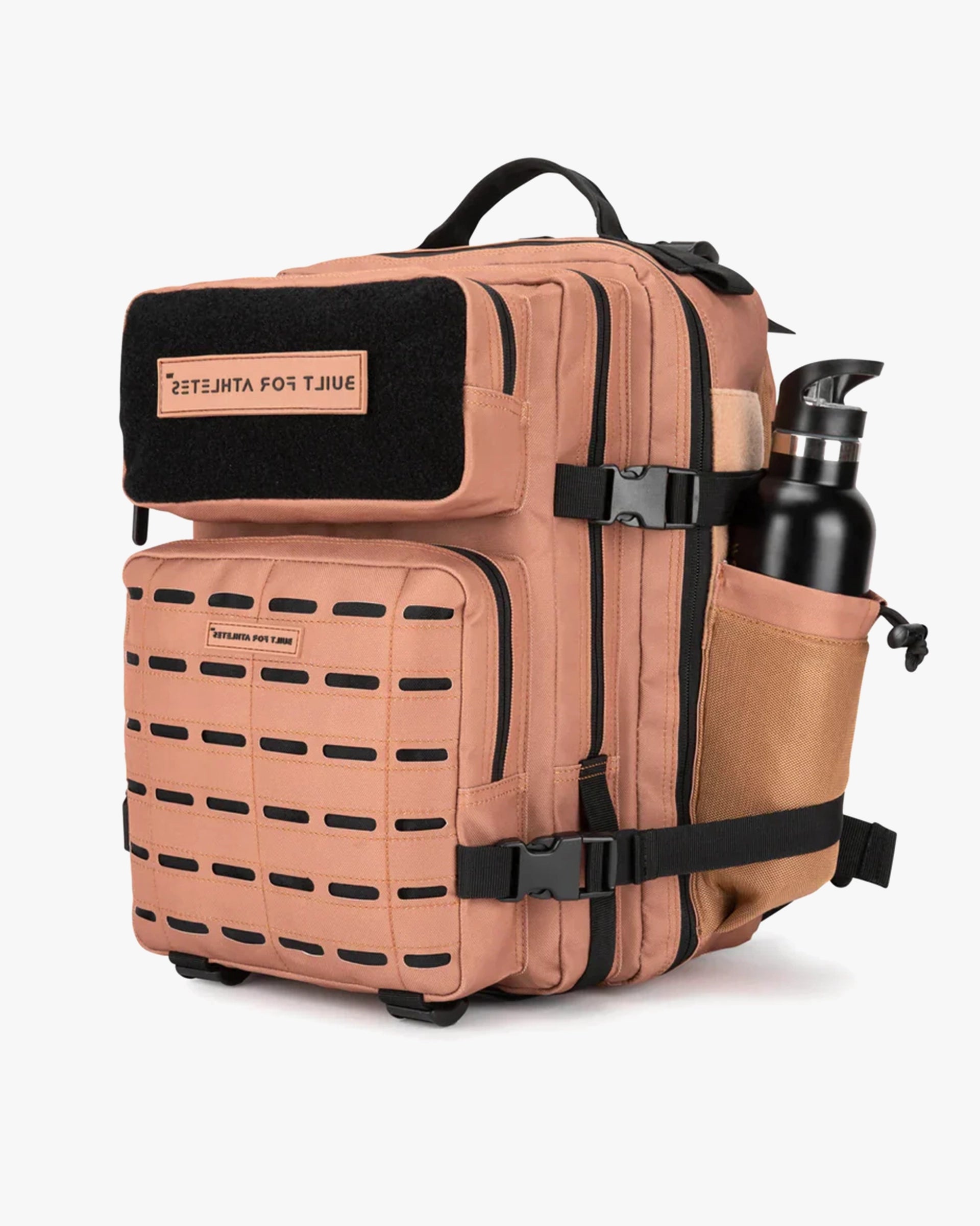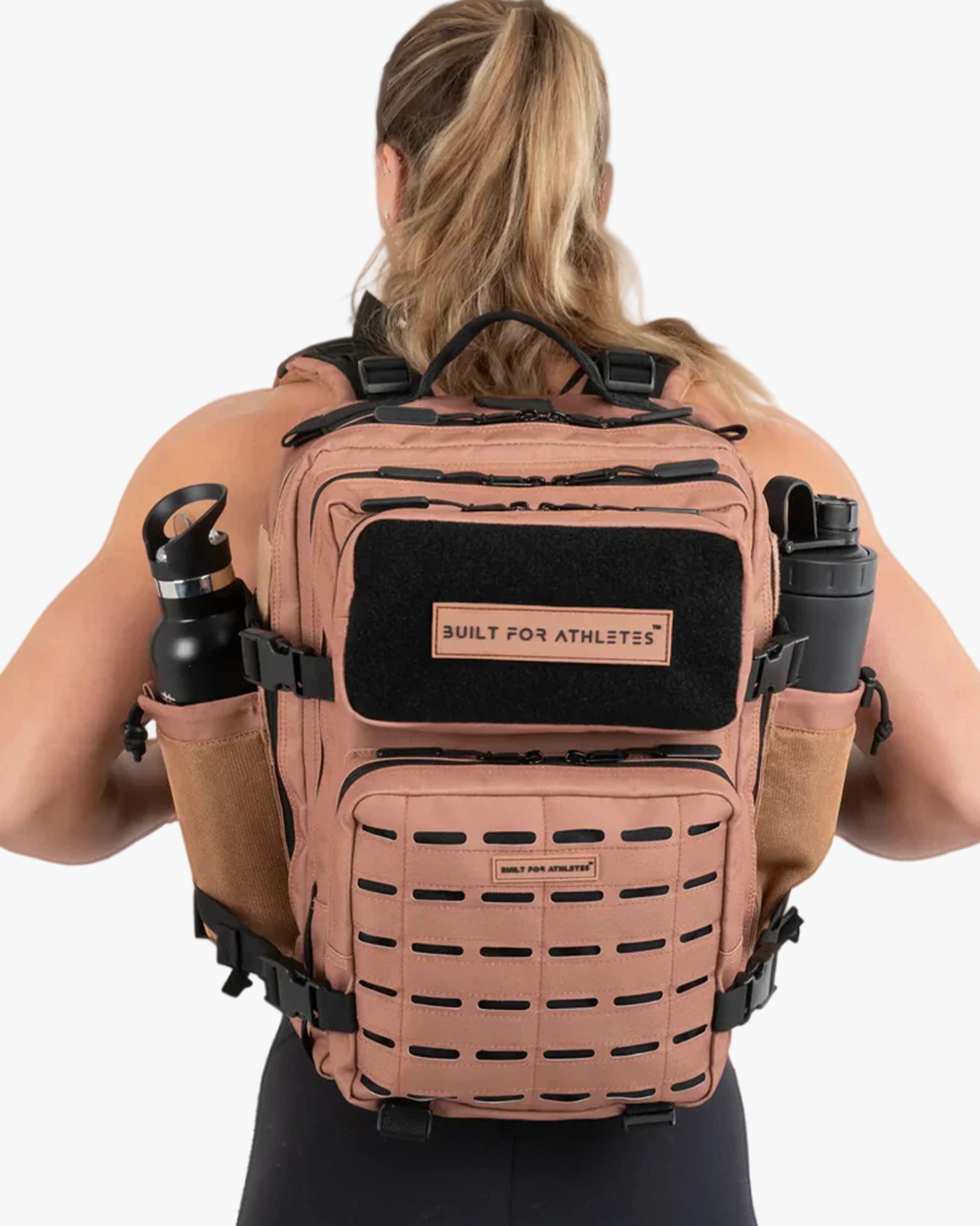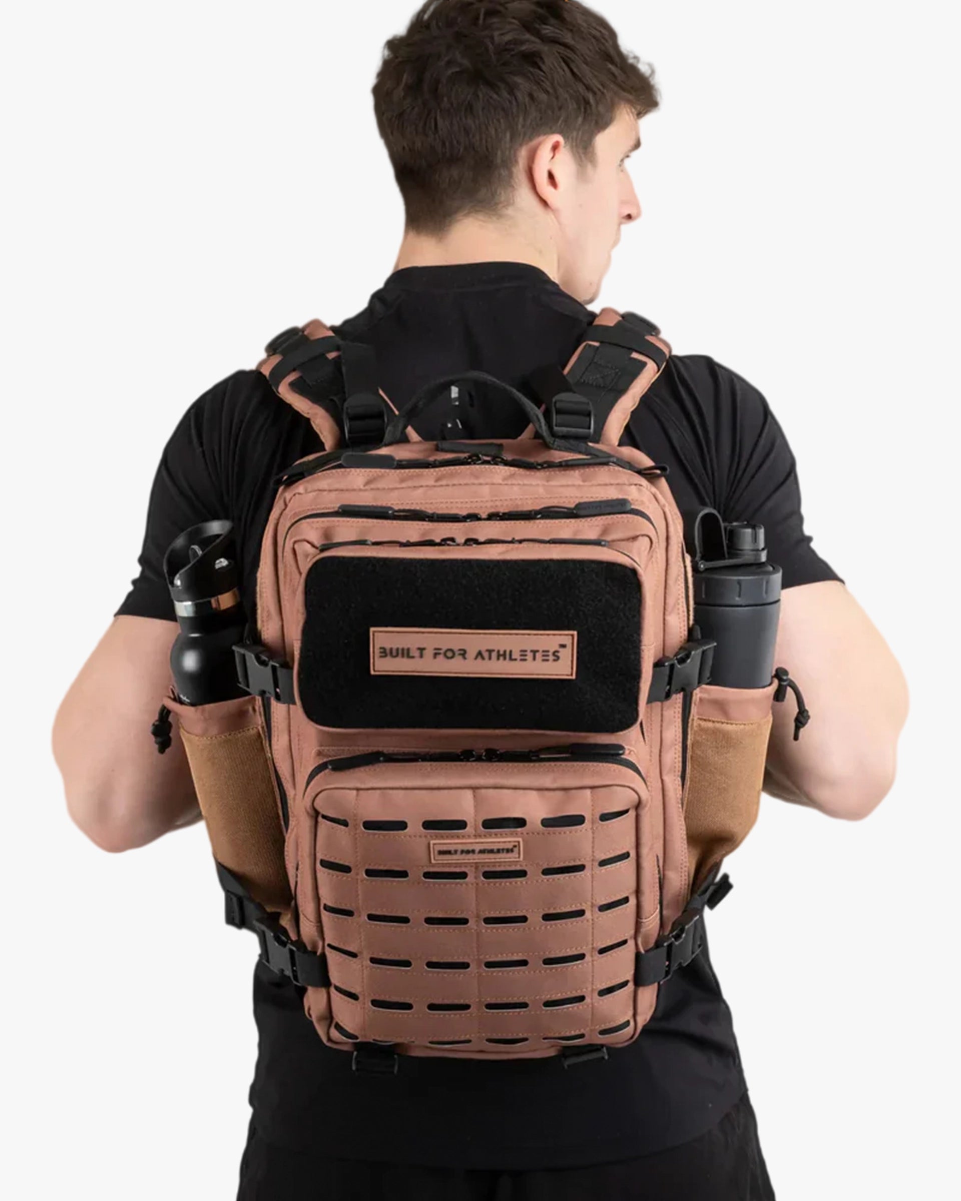The small black gym backpack has a capacity of 25L, ideal for all your daily fitness kit. It may have smaller capacity than the large gym backpack, but it's just as functional and tough! Features include 2 side bottle holders, full hook and loop upper pocket for maximum personalization and a laser cut molle for a stronger and cleaner aesthetic.